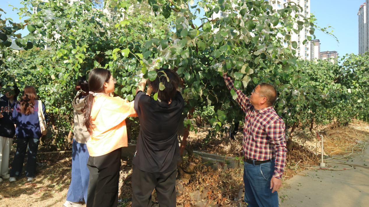 活动伊始,老师介绍果树疏果的特点和重要性,合理控制果实数量,可提高品质和产量。随后,老师向同学们解释果树套袋的作用,包括防止病虫害、减少农药残留、改善果实品质等,并现场示范疏果与套袋的正确方法和注意事项。