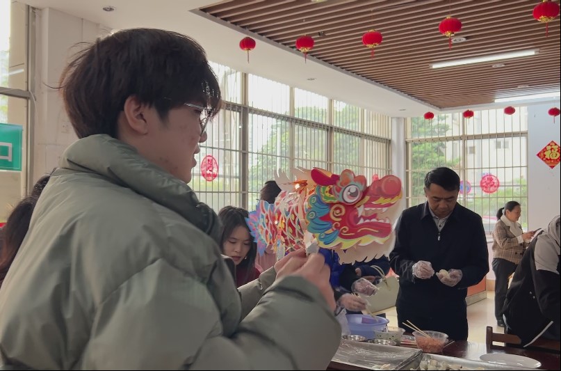 公司党委副书记甘敏思老师、团委书记李诺老师代表公司向公司留校过年的同学们致以新春问候与祝福,并与同学们一起包饺子、写“福”字,共贺龙年新春佳节。