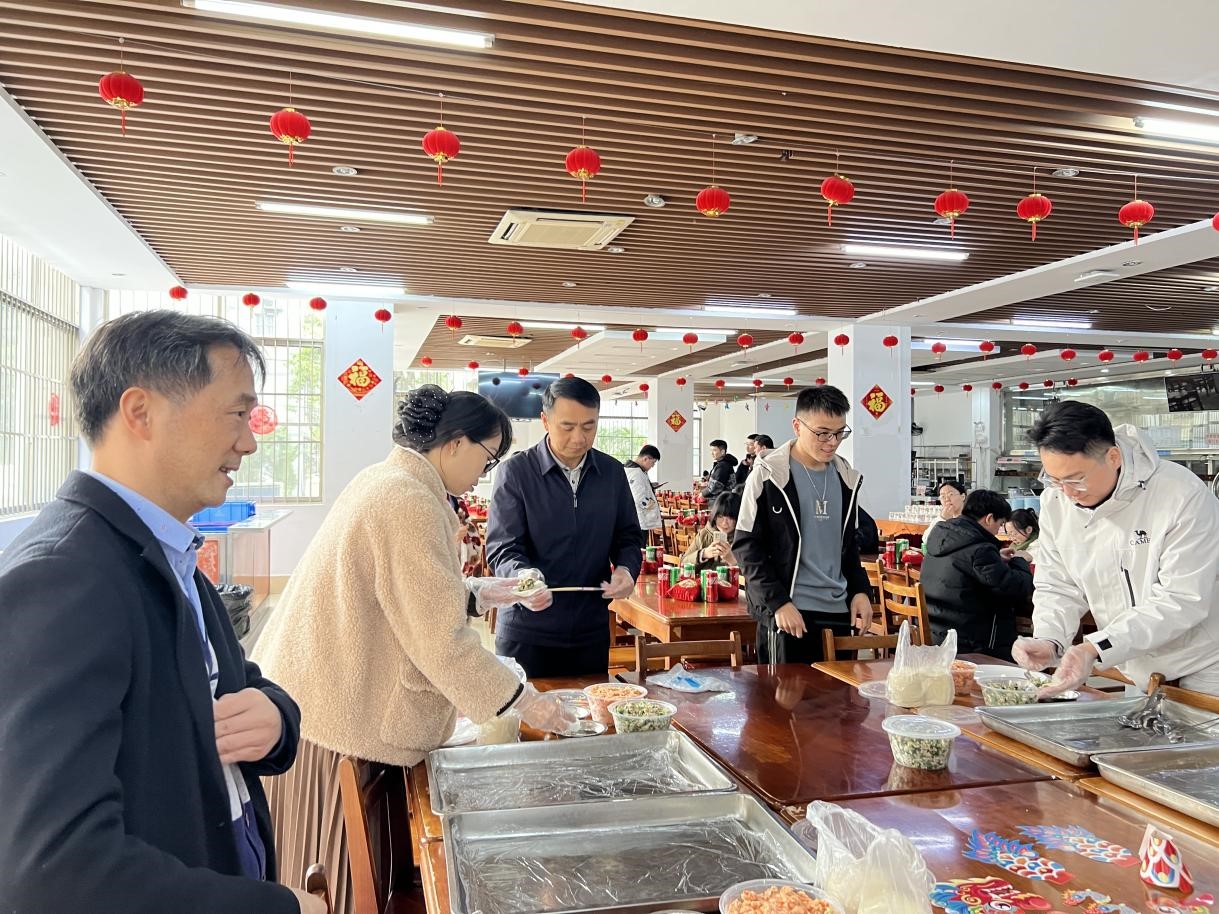 公司党委常委、副董事长宁旭初及公司相关部门负责人、各公司辅导员,公司党委副书记甘敏思老师、团委书记李诺老师出席活动,为寒假留校的员工送上温暖问候和新春祝福,让过年留校的同学们深切感受到浓浓的“年味”。