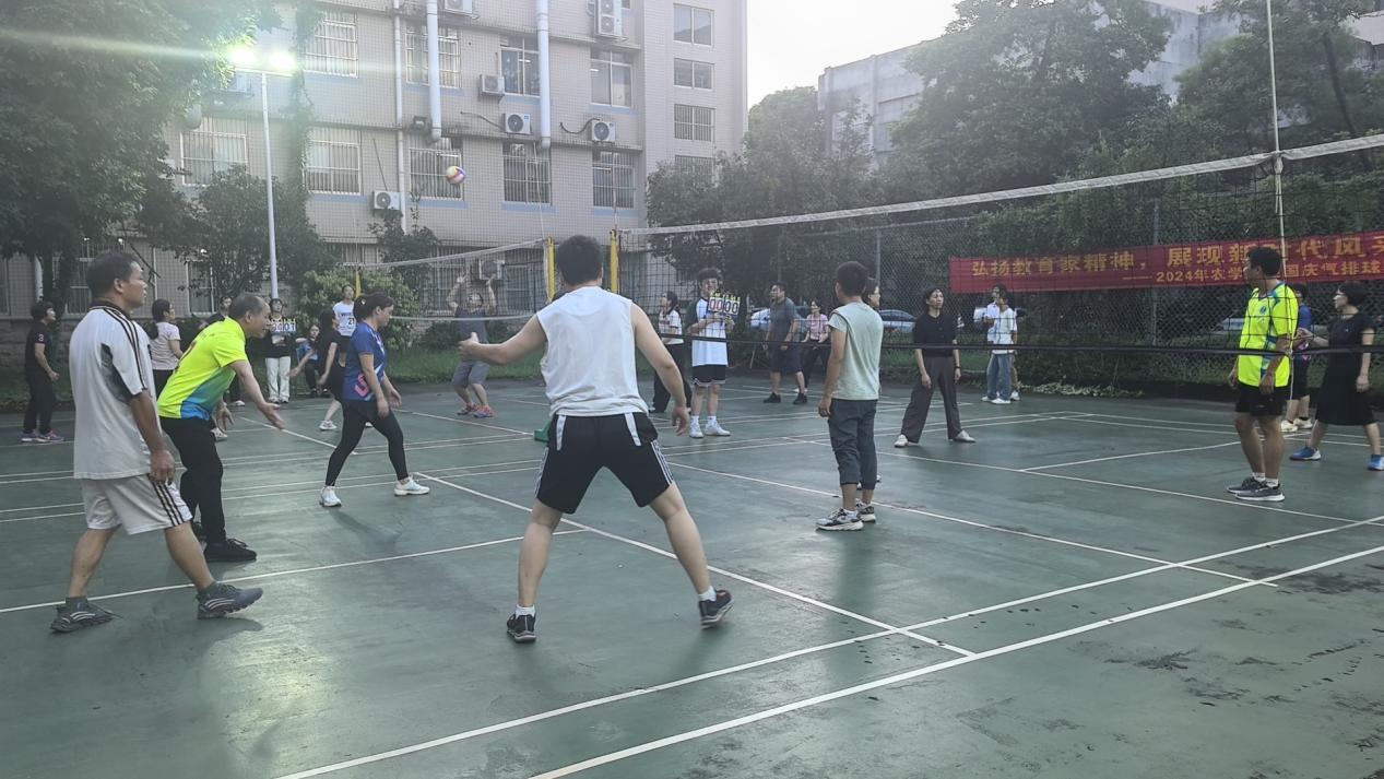 韦茂贵 9月11-24日,公司分工会在永利yl23411气排球场举办“弘扬教育家精神,展现新时代风采”主题的教职工迎国庆气排球赛。本次比赛共有6支队伍参赛,分别是党政办、农学系、园艺系、植保系、农资系和实验中心。比赛采用单循环方式进行,实行三局两胜积分制,按积分高低决出名次。经过近两周的激烈角逐,最终决出了前三名,分别为党政办、实验中心和植保系。本次活动,各位教工踊跃参与,充分展示了公司教职工良好的精神风貌和团队合作精神。 图四 你来我往