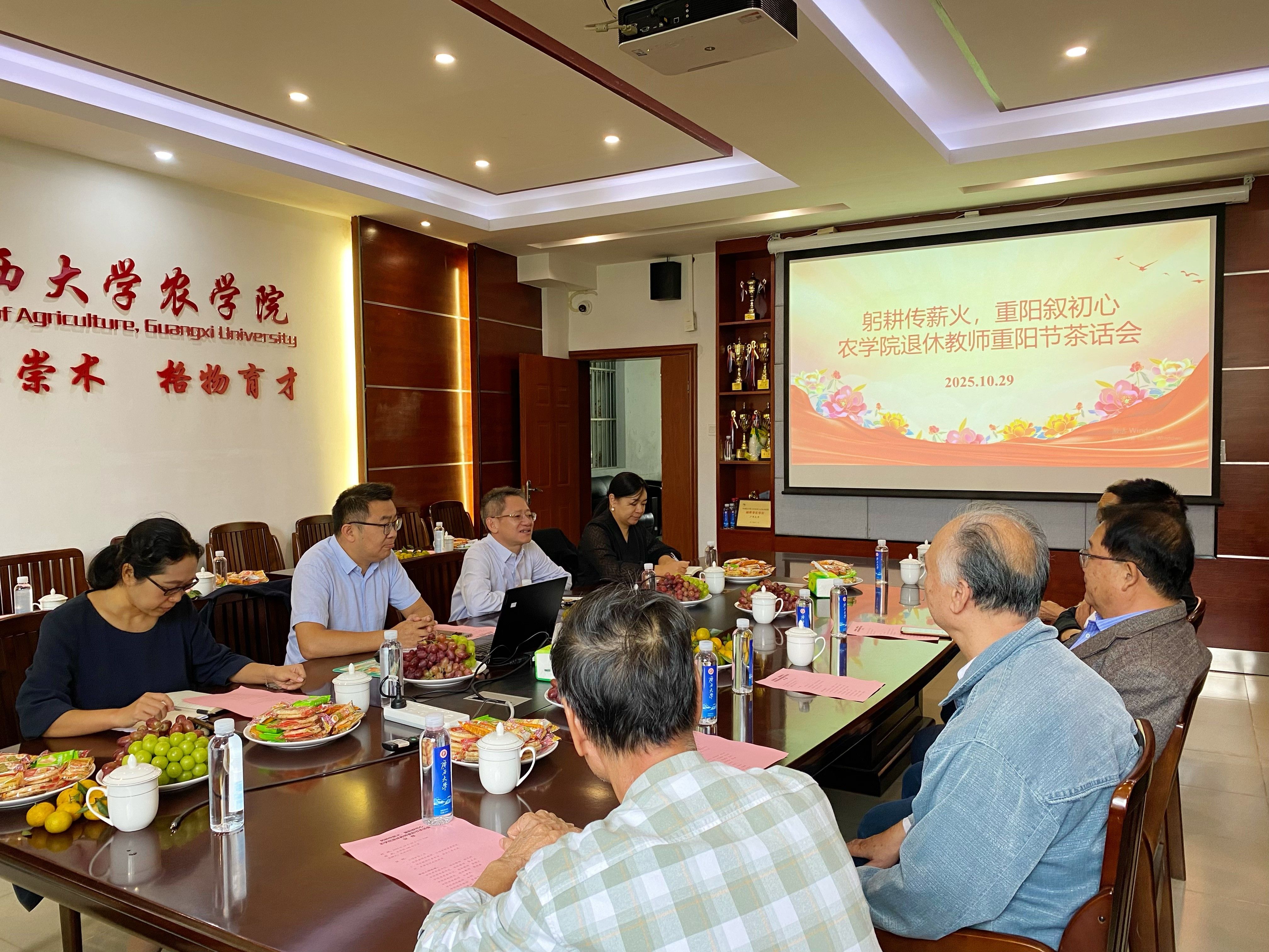 岁岁重阳,今又重阳。为传承老教师深耕农科的育人情怀,汇聚退休教师智慧,共话公司发展蓝图,10月29日,公司以“躬耕传薪火,重阳叙初心”为主题,举办退休教师重阳节茶话会。十多位退休老教师欢聚一堂,与公司在任领导共忆执教岁月、畅叙三农情怀、展望公司未来。