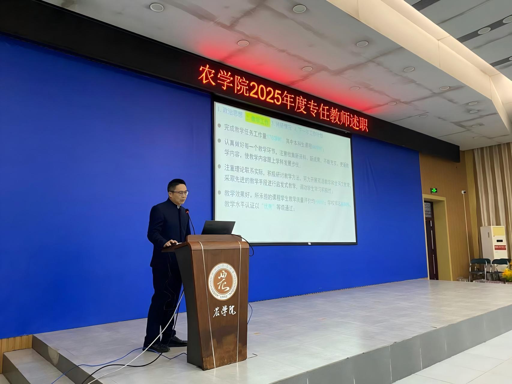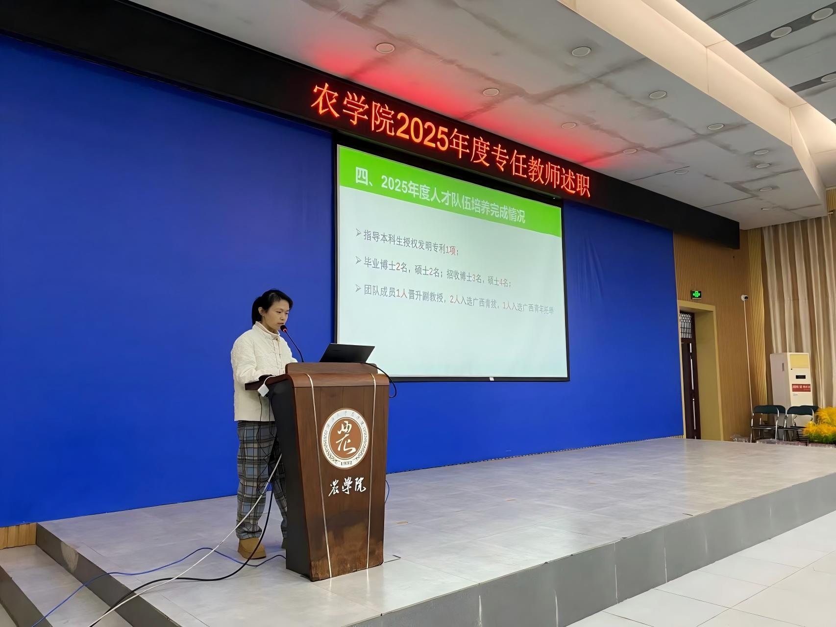本次述职按照集团考核工作要求,聚焦师德师风、人才培养、科学研究、社会服务等核心职责。各专任教师提前精心准备PPT,围绕聘用合同履职情况,系统梳理2025年度工作业绩和亮点。汇报现场,专任教师结合自身工作实际,用数据说话、以实绩印证,全面总结工作成效:在教学领域,深耕新农科建设,推进课程思政与信息技术融合,斩获多项教学成果奖;在科研方面,聚焦亚热带农业特色,高水平论文与科研项目成果丰硕;在社会服务中,深入乡村振兴一线,以技术赋能产业发展,彰显农科学者担当。同时他们也客观分析工作不足,明确后续改进方向。