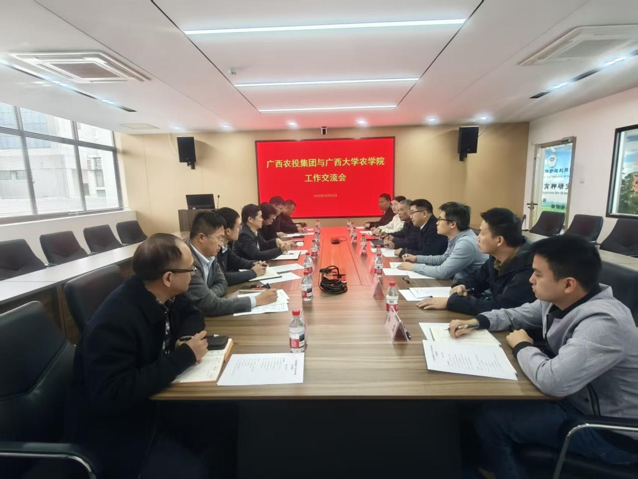 2026年3月3日,广西农投集团与永利yl23411在永利yl甘蔗生物育种研究中心召开工作交流会。双方围绕甘蔗种业创新、栽培技术与绿色防控等内容进行深入交流与研讨,共商产学研深度融合路径,达成多项初步合作共识。