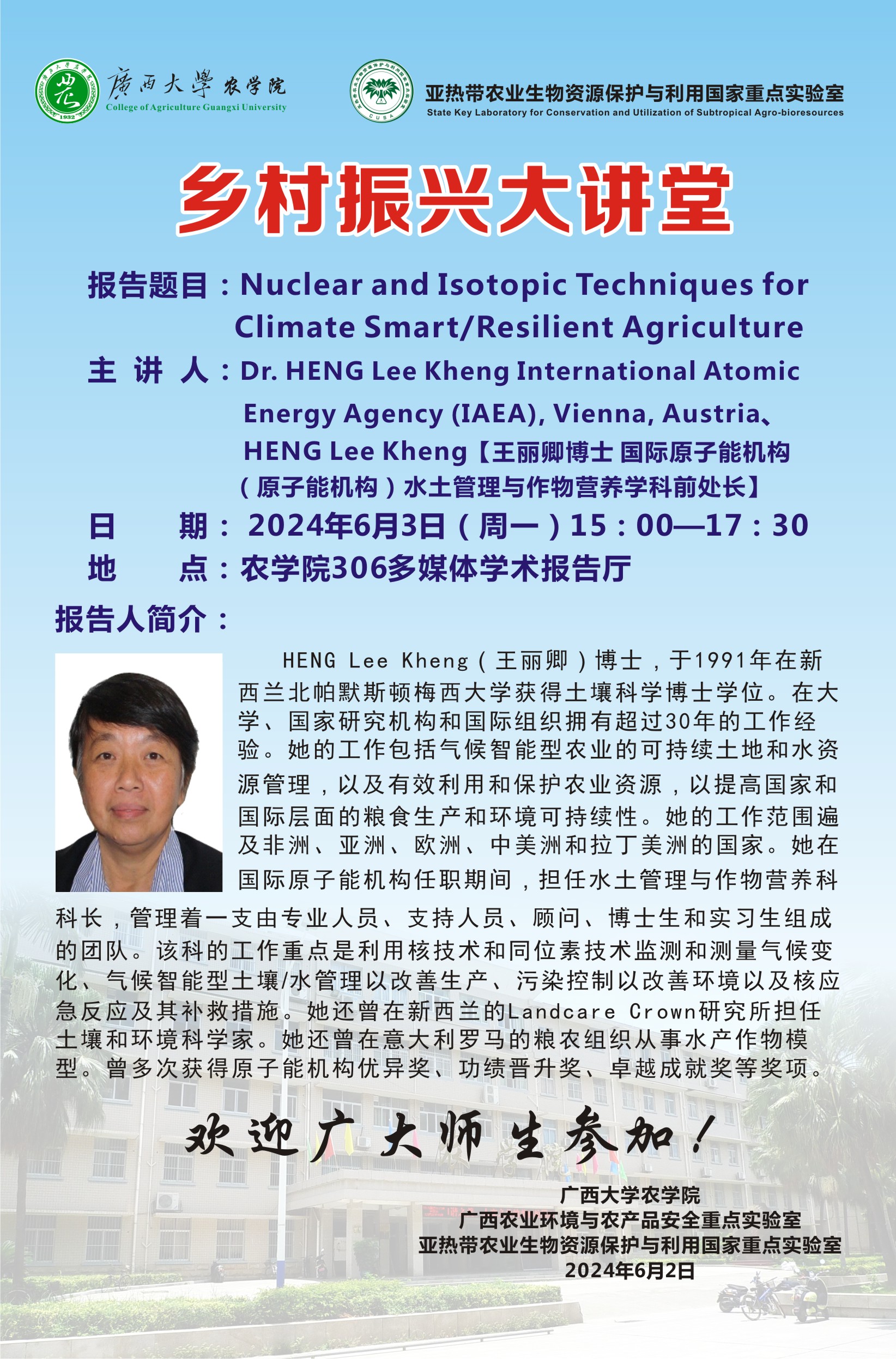 乡村振兴大讲堂-Nuclear and Isotopic Techniques for Climate Smart/Resilient Agriculture
