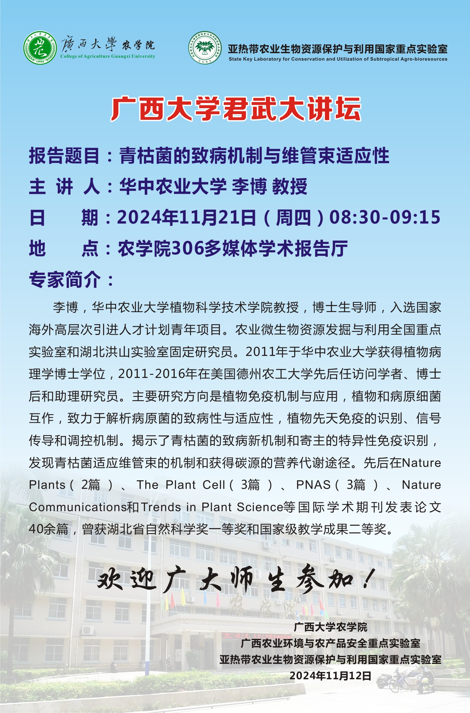 乡村振兴大讲堂-青枯菌的致病机制与维管束适应性-李博