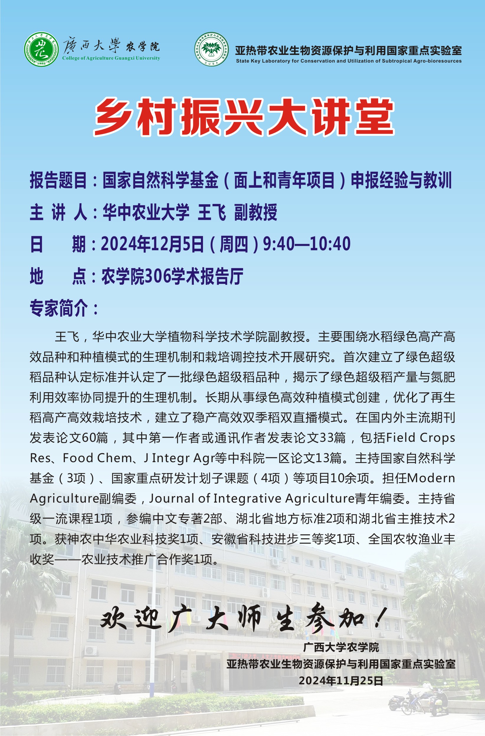 乡村振兴大讲堂-国家自然科学基金(面上和青年项目)申报经验与教训-王飞