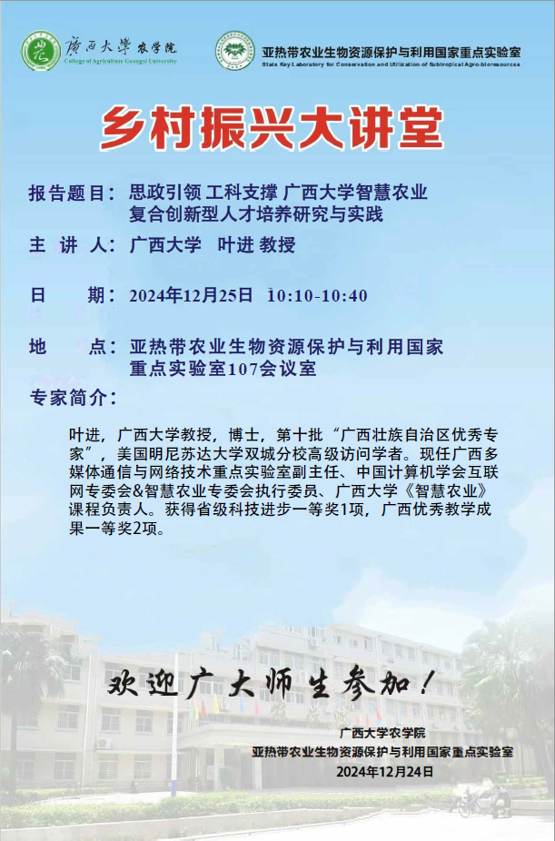 乡村振兴大讲堂-思政引领工科支撑永利yl智慧农业复合创新型人才培养研究与实践-叶进