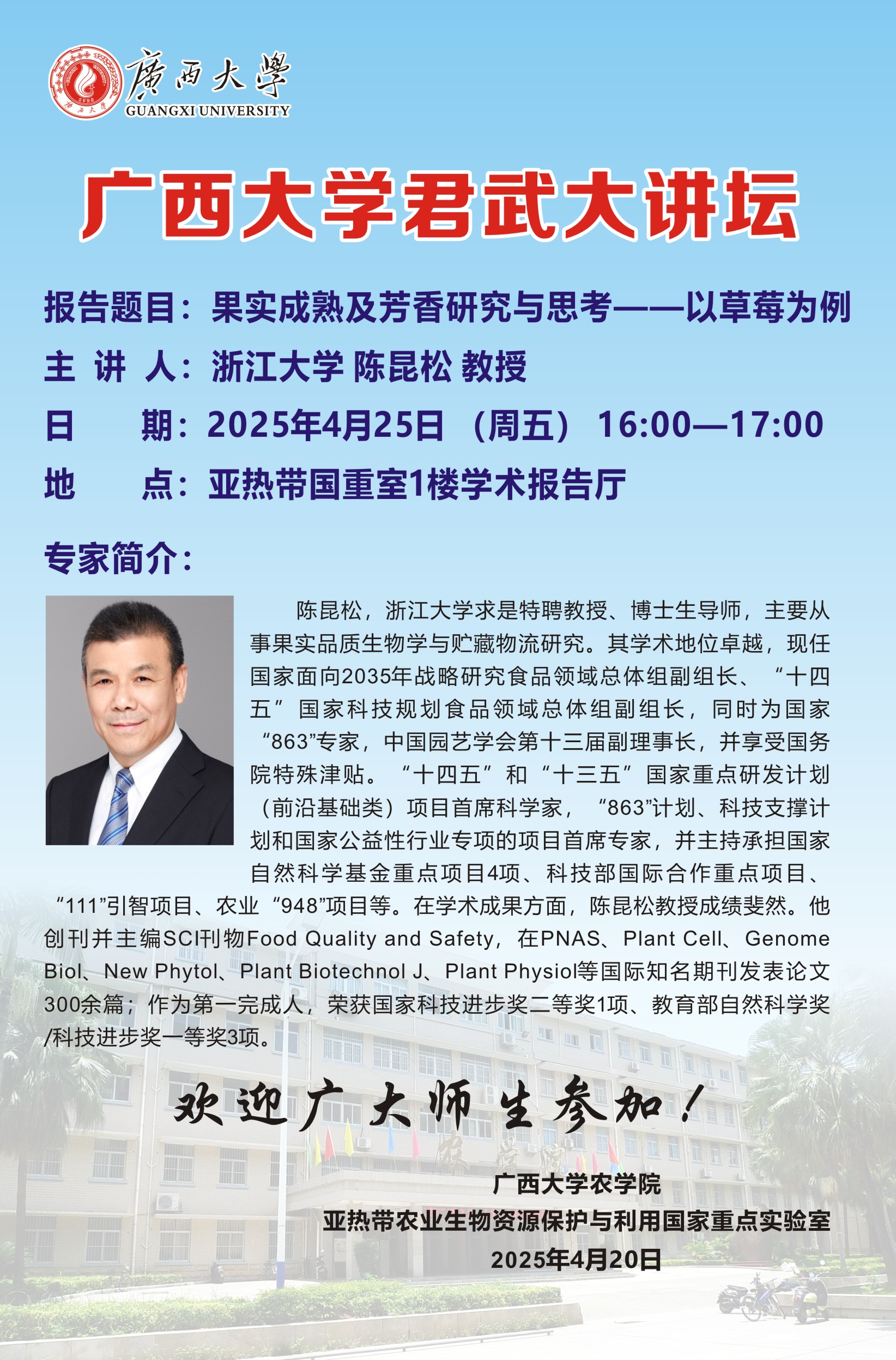 君武大讲堂-果实成熟及芳香研究与思考-以草莓为例-浙江大学陈昆松教授