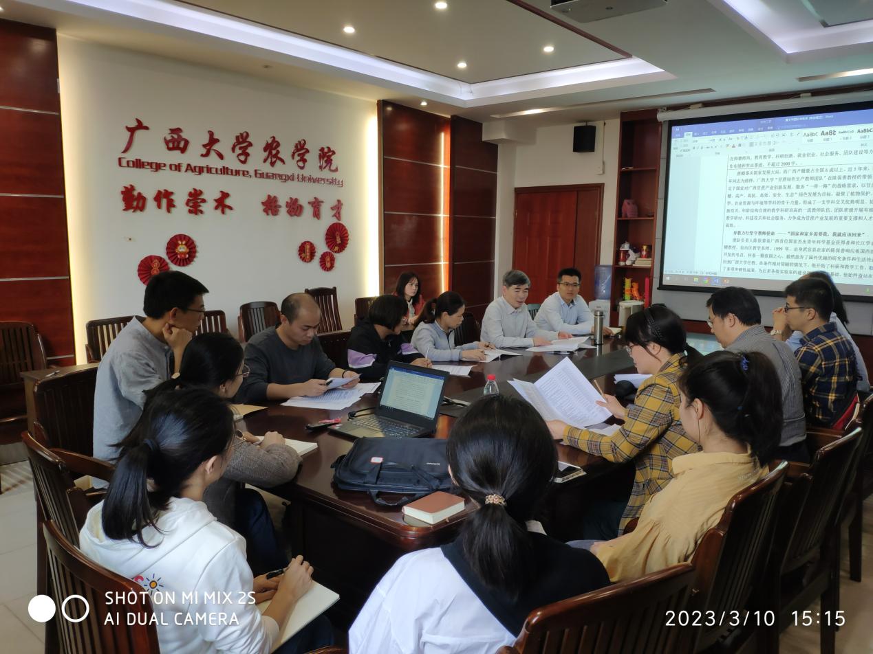 2023年3月10日,公司在149会议室召开“黄大年式甘蔗绿色生产教师团队”建设研讨会。经理李建雄教授、植物保护学科带头人陈保善教授、植物保护系主任谭辉华教授、副主任郑德洪副教授、以及甘蔗绿色生产团队教师参加会议。会议由副经理韦燕燕副教授主持。